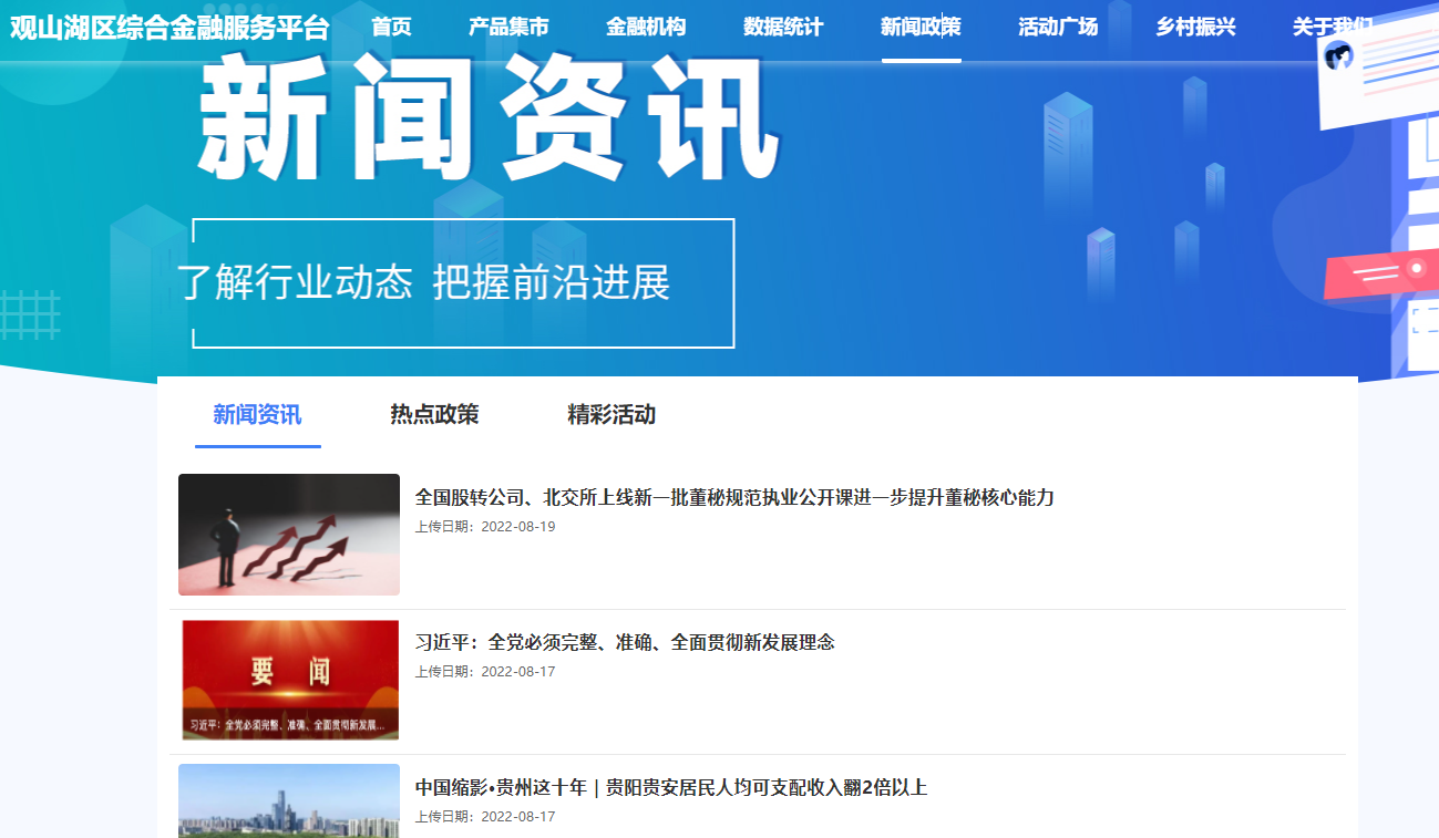 除此之外,首頁還將展示通知公告、熱點政策、精彩活動、機(jī)構(gòu)動態(tài),全方位為企業(yè)融資保駕護(hù)航,還進(jìn)行成果展示,包括入駐金融機(jī)構(gòu)數(shù)、金融服務(wù)顧問數(shù)、金融產(chǎn)品數(shù)、發(fā)布需求數(shù)、解決需求數(shù)等,各項數(shù)據(jù)一目了然。