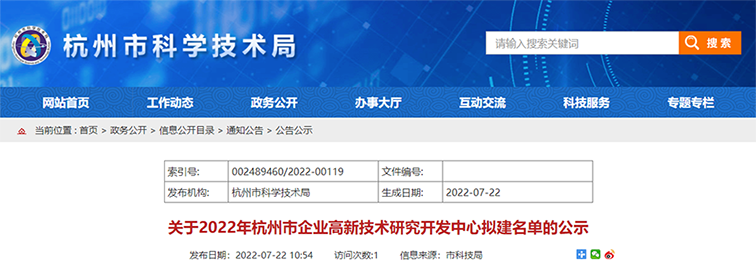 2022年7月22日,杭州市科學(xué)技術(shù)局發(fā)布了“2022年杭州市企業(yè)高新技術(shù)研究開發(fā)中心擬建名單”,根據(jù) 《杭州市企業(yè)高新技術(shù)研究開發(fā)中心管理辦法》的規(guī)定,宇為科技申報的“杭州市宇為金融科技企業(yè)高新技術(shù)研究開發(fā)中心”經(jīng)過杭州市科技局組織的專家組現(xiàn)場實地考察和評審,一致認定符合研發(fā)中心建設(shè)條件,成功入選擬建名單。