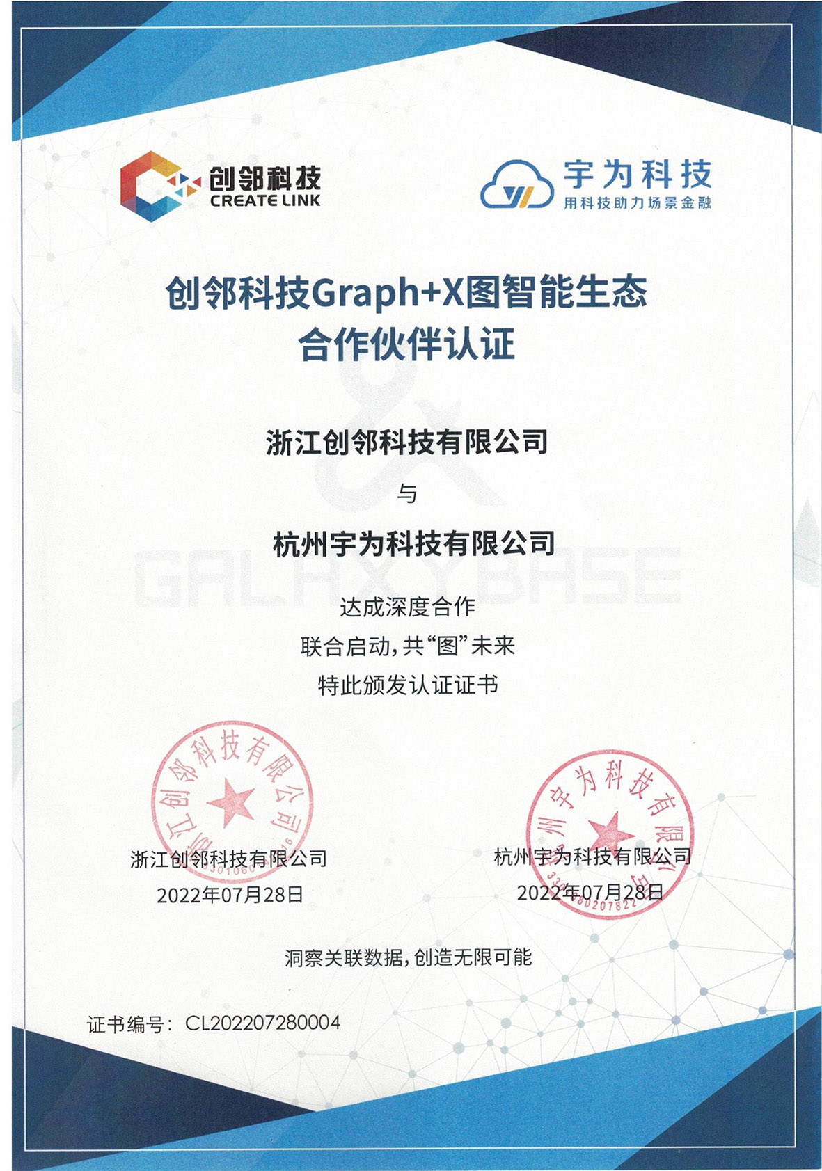 2022年7月28日,杭州宇為科技有限公司(以下簡(jiǎn)稱(chēng)“宇為科技”)與浙江創(chuàng)鄰科技有限公司(以下簡(jiǎn)稱(chēng)“創(chuàng)鄰科技”)簽署合作協(xié)議,正式加入“Graph+X”圖智能生態(tài)合作體系,開(kāi)啟全方位合作。