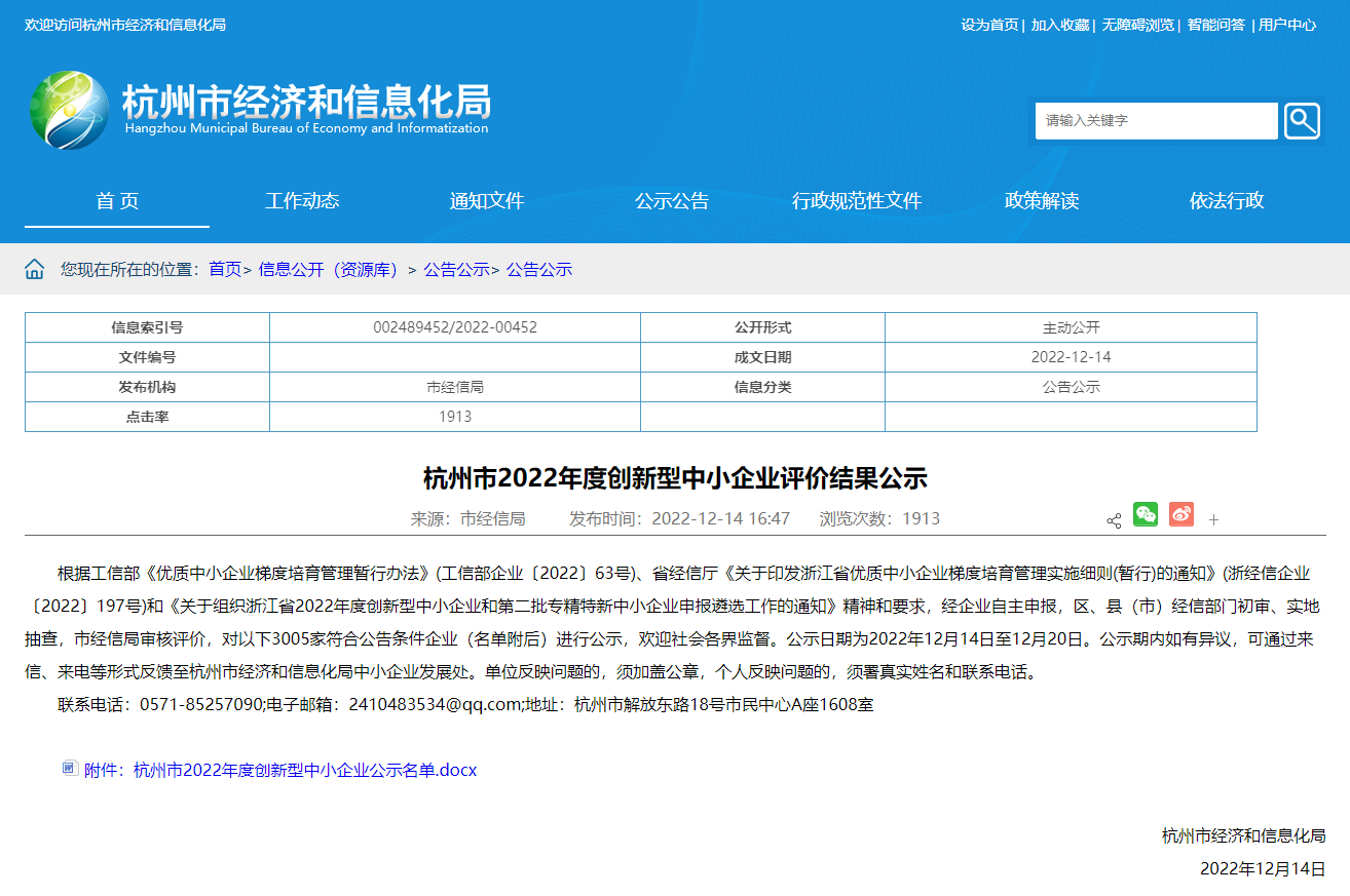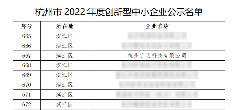 近日,杭州市經(jīng)濟和信息化局發(fā)布“杭州市2022年度創(chuàng)新型中小企業(yè)評價結(jié)果公示”公示名單,經(jīng)企業(yè)自評、地市初審、省廳復(fù)核等程序,杭州宇為科技有限公司成功入選為“2022年創(chuàng)新型中小企業(yè)”。